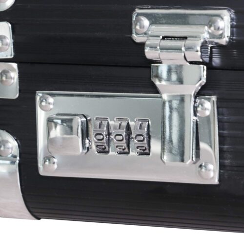 Der HMF Aktenkoffer überzeugt durch seine hochwertige Aluminiumoptik in Schwarz und Silber. Abgerundete Ecken und ein verstärkter Aluminiumrahmen garantieren ausreichend Stabilität und Stoßfestigkeit. Der ergonomische Tragegriff sorgt für hohen Tragekomfort und verformt sich nicht. Die vier Standfüße geben dem Koffer eine gute Standfestigkeit und vermeiden Kratzer auf dem Boden.